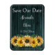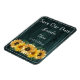 Anuncie seu próximo dia de casamento para família e convidados com uma Imã salve a data Rústica de Sunflower Teal. Design de ímã apresenta um fundo de madeira rústico com um buquê elegante de girassóis. Personalize com os nomes do noivo e da noiva junto com a data do casamento. Papelaria de casamento e presentes disponíveis com esta design também.
