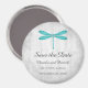 Imã salve a data elegante e simples apresentando uma libélula teal contra um fundo de cinza. Esta design é uma escolha única para anunciar um casamento moderno. Fácil de personalizar com seus detalhes de casamento. Clique em "Personalizar" para encontrar mais opções de personalização.