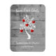 Anuncie seu próximo dia de casamento para família e convidados com uma Imã salve a data Vermelha de Corações. O design do ímã apresenta um fundo de madeira de cinza adornado com uma árvore com corações florescentes nos seus ramos. Personalize com os nomes do noivo e da noiva junto com a data do casamento. Papelaria de casamento e presentes disponíveis com esta design também.