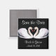 Imã salve o dia, com gansos elegantes em forma de coração sobre fundo preto. Insira suas informações em nosso modelo fácil de usar.