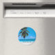 Cena de praia tropical com espaço para nomes da noiva e noiva e um lugar para você se adaptar com a data do casamento.