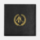 Logotipo da tesoura de barbearia dourada escura sobre o couro preto