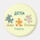 "Esperança, inspiração, acredite." Uma mensagem simples para todas as vidas de quem é é tocada pelo austimo. Projetadas com um apelo mais moderno, três peças de quebra-cabeça são o foco central dessa design artística. Personalize para as suas necessidades. Design original por Rebecca da Menagerie da Night Owl, 2010.