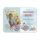 Doce design de graduação pré-escolar com foto de seu filho e detalhes cercados por acessórios temáticos da escola, como um notebook, uma bicicleta, uma mochila e livros com um cupcake bonito e elegante sentado em cima. Design composto por Holiday Hearts Design (direitos reservados).