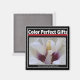 Elegante rosa branca sobre fundo preto, com o logotipo Color Perfect Gifts em um ímã quadrado. Esta design simboliza a pureza, a inocência e os novos começos, fazer-a como uma adição atenciosa e bela a qualquer superfície magnética.