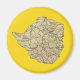 O design neste ímã apresenta um mapa do Zimbábue com um fundo de cores de bandeira. Adicione um pouco de sabor zimbabuense à sua casa.