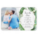 Esta imã salve a data de palma tropical selvagem é perfeita para um casamento de praia ou destino. A design apresenta um conjunto exótico de folhas de palmeiras de banana-d'água verde, samambaias, folhagem, plantas botânicas e verde para uma sensação tropical de verão. Personalize com sua foto de noivado, nomes, data de casamento e endereço do site.