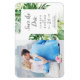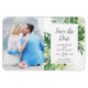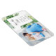Esta imã salve a data de palma tropical selvagem é perfeita para um casamento de praia ou destino. A design apresenta um conjunto exótico de folhas de palmeiras de banana-d'água verde, samambaias, folhagem, plantas botânicas e verde para uma sensação tropical de verão. Personalize com sua foto de noivado, nomes, data de casamento e endereço do site.