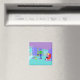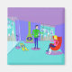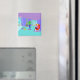 Brrr... Este Retro Ski Vacation Magnet te fará procurar um Santo Bernard com um barril de brandy. O desenho moderno do meio século apresenta um casal glamouroso enfiado num chalé de esqui colorido com uma visão magnífica. O quarto tem um piso de turquesa e paredes roxas. São os anos 60! As janelas do chão até o teto revelam montanhas cobertas de neve, um céu turquesa com nuvens azuis-claras, e as silhuetas de pessoas felizes balançando em gondolas de elevador de esqui. Dentro na sala, vemos uma lareira verde-oliva, cone com um fogo brilhante. Tocados no chão estão dois esquis amarelos ao lado de bastões de esqui. No centro da sala, um homem bonito e de cabelo preto veste calças azuis e um suéter verde de gola-de-gola. Ele é carregando bandeja de martinis. Um braço está ultrapassado, oferecendo um martini à mão de espera de uma mulher loira. A mulher está sentada em uma cadeira vermelha, de ovo. Ela está vestindo calças azuis marinhos e um suéter rosa quente. Por favor, desculpe-a por não se levantar, mas ela tem um elenco em uma perna!