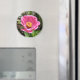 Este belo ímã apresenta uma fotografia detalhada de uma flor rosa espantosa da Zinnia. A fotografia foi tirada usando macrofotografia para um resultado extremamente detalhado.