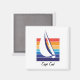 Agora essas memórias do Cabo podem ficar com você, onde quer que você vá. Nosso ímã Cape Cod, "Praça da Cor do Barco", apresenta um simples e elegante design de veleiro, apoiado com uma gradação graciosa de tons de arco-íris oceano-ao-sol. Ou, apenas adicione-o à sua cozinha doméstica ou coleção de geladeiras de galley.