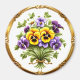Este ímã apresenta um belo buquê de flores pansas cercadas por aparas douradas.