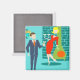 Querida, estou em casa! Este Casal de Cartoon da Idade do Espaço Retroativa terá inveja do casal de cartoon em um ímã! O design apresenta um fundo turquesa com tijolos lacrimogêneos e uma lareira de cone verde-oliva. Há um relógio de parede lacrimogêneo e uma lâmpada pendente de dois níveis em tons de amarelo, azul e preto. Na frente e no centro, há um distinto empresário martini a nadar num terno azul e gravata laranja. Ao seu lado, a sua loira bomba de uma esposa troféu está a vestir um vestido vermelho de bruxa e a segurar uma bandeja de martinis. Va-va-va-voom!