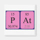 Pat soletrado como P At (Phosphorus Astatine) em um ímã para o cientista em você.
