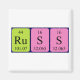 Russ se soletrou como Ru S (Ruthenium Sulfur Sulfur) em um imã para o cientista em você.