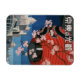 É uma reprodução do poster de viagens japonês dos anos 30. Ele lê "Venha a Tóquio", e apresenta uma lanterna de papel com flores de cereja em frente à arquitetura moderna e tradicional com a marca registrada da cidade na trilha férrea elevada. Faça suas memórias de viagem com este belo ímã fotográfico.