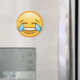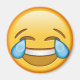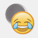 Este ímã redondo apresenta o emoji amarelo feliz