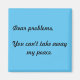 Todos nós temos problemas. Mas se temos fé no nosso Criador e na capacidade do Criador de nos ajudar, também temos paz. A citação sobre o ímã azul de geladeira quadrada reflete isso. Eles estão disponíveis em outros estilos, cores e tamanhos no Zazzle na nossa loja BsApparelPlus. Para itens e presentes semelhantes, confira nossa 'Coleção de Despertar Espiritual' e nossa coleção 'Apenas Magnets'. Obrigados para comprar conosco!