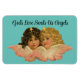 Uma bela e vintage imagem de dois anjos em um fundo teal, é apresentada neste flexível ímã fotográfico. Com a mensagem "O amor de Deus nos envia anjos", um doce lembrete que somos amados por Deus e seus anjos sagrados. Use-se ou dê como um pequeno presente, excelente para casa ou escritório!