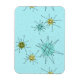 Este Ovo Azul Icônico de Starbursts Atômicos Flexíveis de Magnet de Robin apresenta rajadas atômicas icônicas. Isso mesmo! A antiga escola, o fundo azul de ovo de robin com manchas de ouro é o pano de fundo perfeito para a vibrante turquesa, o aipo de salmoura e os círculos verde cor de pera da cozinha. As manchas de cor são colocadas esporadicamente em vários tamanhos com linhas pretas em forma de V sobrepostas para formar as estórias do mod sputnik. Estimulado após um padrão prato de 1950, este design retrorinspirado tem tudo o que você precisa para ser verdadeiramente meio século moderno.