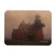 Os ímãs de fotos do Fanfarrão de Block Island apresentam uma fotografia colorida impressionante capturando um farol vermelho com manchas brancas em uma manhã nebulosa em Block Island, Rhode Island. Esta modesta fotografia de um farol foi tirada por Kurt Keller com uma câmara de 35 mm enquanto a bicicleta andava à volta da ilha. Quem ama faróis e fotografia apreciará este belo ímã fotográfico de farol.