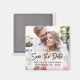Compartilhe sua data de casamento com esta simples e elegante imã salve a data fotográfica com uma de suas fotos de noivado favoritas com o "Salvar a Data" e seus nomes e data de casamento em fontes pretas modernas sobre uma banda de cobertura branca. Para mais personalizações ou encomendas personalizadas, contacte-me livremente em acherryonthecake@hotmail.com (permita 1-2 dias úteis).