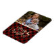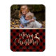 Moderno personalizou a design de Feliz Natal com uma elegante e falsa letra de ouro manuscrita, bela rena, padrão de xadrez de búfalo preto e vermelho. Adicione sua foto favorita.