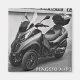 O famoso patinete Piaggio MP3 de três rodas, com suspensão frontal inclinada, como visto numa rua lateral de Paris.