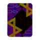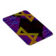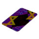 Imagem temática de Hanukkah da SlipperyJoe estrela de Davi em amarelo dourado velas azuis com chamas laranjas ideia de presente de arte inspirada em Menorah identidade judaica espiritualidade feriado padrão simétrico ousado e retrô em grade diamante fundo que combina tradição e design vibrante efeito xadrez roxo e preto celebração religiosa hebraica