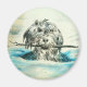 Um doce cão natação para a costa com um novo brinquedo. Criado em caneta de mícron e lavagem de tinta.