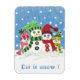 Um ímã flexível e bonito com a ilustração colorida de uma família de homens de neve e as palavras "Deixe-a nevar!" © ArianeC Ilustrações