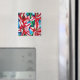 com a arte original de uma pintura aquosa de Sacha Grossel, de uma flor líbia brilhante, rosa-quente, do dia. Este assunto botânico tem pétalas cor-de-rosa intensamente contra fundo azul-céu num design floral colorido. A visão de perto e macro das flores é popular entre amantes florais de design.