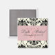 Ímãs de casamento Monograma Damask Preto + Branco, Ímã de data de salvamento. Cor de fundo pode ser adicionada. Lindo tom de rosa, com um pouco de roxo, como um destaque. Copyright © 2009 PixDezines.com e PixDezines no zazzle.com