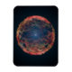 Impressão artística da supernova 1993J, uma estrela explosiva na galáxia M81 cuja luz nos atingiu há 21 anos. A supernova originou-se de um sistema de duas estrelas em que um membro era uma estrela massiva que explodiu depois de fincar a maior parte de seu envelope de hidrogênio para sua estrela companheira. Depois de duas décadas, os astrônomos identificaram finalmente a estrela companheira que queima hélio azul, vista no centro da nebulosa em expansão de detritos da supernova.