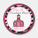 Um ímã para professores com o logotipo da dentro da escola cor-de-rosa, um quadro de impressão zebra em forma de círculo com forma cor-de-rosa. O texto preto e rosa diz "Professores Pré-K têm aula."