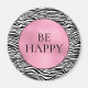 Impressão em Zebra Negra e Branca seja feliz no círculo cor-de-rosa vítreo ímã inspirador personalizado