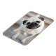Pug com cabeça inclinada.