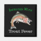Presente perfeito para o ávido pescador de trutas, pescador de moscas ou pescadora de moscas na sua vida com uma cor de cheio e uma imagem detalhada de uma poderosa truta arco-íris saltitante com o texto Infectado com Febre Tranquila.
