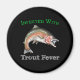Presente perfeito para o ávido pescador de trutas, pescador de moscas ou pescadora de moscas na sua vida com uma cor de cheio e uma imagem detalhada de uma poderosa truta arco-íris saltitante com o texto Infectado com Febre Tranquila.