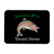 Presente perfeito para o ávido pescador de trutas, pescador de moscas ou pescadora de moscas na sua vida com uma cor de cheio e uma imagem detalhada de uma poderosa truta arco-íris saltitante com o texto Infectado com Febre Tranquila.