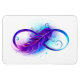 Símbolo infinito com uma bela pena pintada em cores roxas e azuis brilhantes sobre fundo branco.