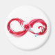 Símbolo infinito do fluxo contínuo de vinho tinto que entra em vidro de vidro sobre fundo branco.