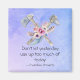 Um sábia e inspirador provérbio de cherokee que diz: não deixe que ontem tome muito de hoje. O design é criado com uma imagem aquosa de um tomahawk e de uma machadinha cruzados, em seu centro está um buquê de penas e flores bonito rosa e amarelas. O fundo é uma textura macia azul-d'água.