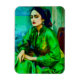 Um retrato gerado pela IA de uma mulher introspectiva em um vestido verde
