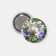 Este ímã apresenta uma imagem de uma íris púrpura e branca com bordas de ouro delicadas. É uma visão cativante, mostrando a beleza e elegância das criações da natureza. O ímã, retangular ou circular em forma, tem uma superfície lisa e brilhante que melhora a nitidez da imagem.