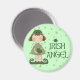 Este design bonito mostra uma garotinha vestida de verde e segurando um grande pântano com a legenda "Irish Angel" em um fundo de xamrochas.