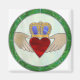 Claddagh. As mãos denotam amizade e união, o coração significa amor e a coroa representa lealdade. Esta design foi transformada como se fosse feita de vidro manchado.