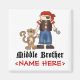 Cute Pirate em bandana vermelha com macaco, texto diz 'Irmão Médio'. Cor de fundo personalizável. Tem designs de irmão mais velho e irmão mais novo. irmãos irmãos irmãos irmãos irmãos filhos do meio+irmão irmãos irmãos piratas bonitos macacos jolly+roger