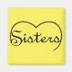 Design atualizado com a parte superior de um coração e a palavra SISTERS trabalhou nele - em um roteiro preto sobre fundo sólido colorido ou plano. Muito espaço para personalização. Você pode mudar a cor do fundo para o seu favorito!