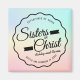 Design de emblema cristão, preto e elegante, com palavras, "Sisters in Cristo" em escrita com design de faixa. O centro de topo do emblema tem palavras, "Criado pela graça." O centro de fundo do emblema design contém palavras, "enraizado e de terra em Jesus." O emblema é negro sobre o belo fundo pastel. Área para seus nomes personalizados (nomes de amigos) sob a palavra "Cristo". presente de excelente para qualquer irmã cristã.